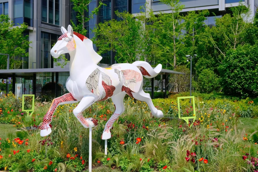 相关负责人说,市民游客可以在苏河湾看一场花艺竞赛,在天后宫体验海派插花非遗技艺,在静安雕塑公园逛上海首届园林文创展,甚至在花漾萌宠乐园里,和狗狗一起拍一张与巨型长颈鹿绿雕的合影。