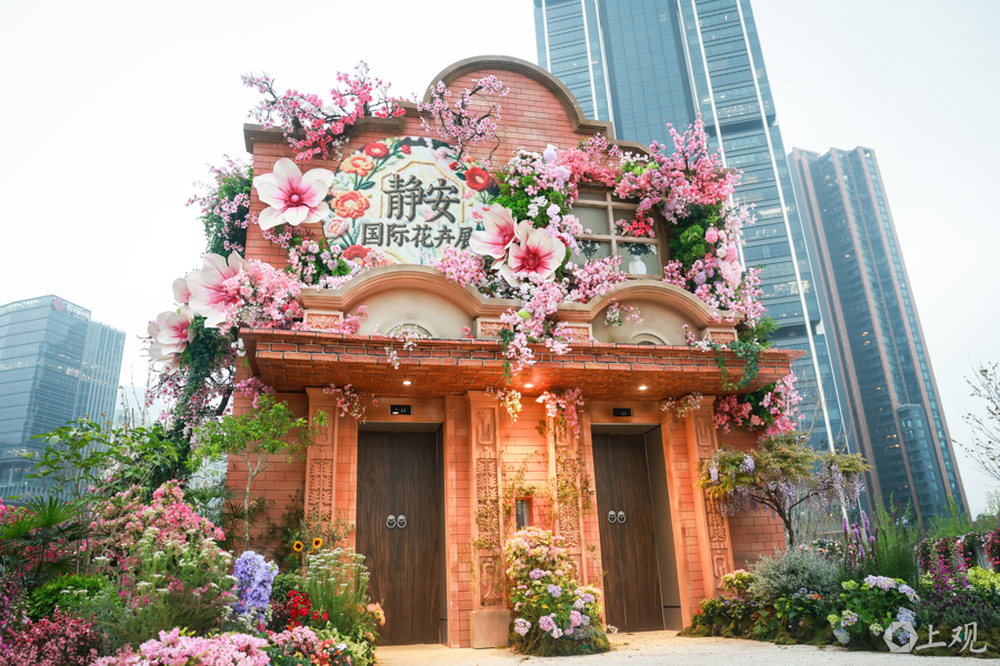 另一个让市民游客频频举起手机的是“繁花里·空中石库门”装置。这是一座悬浮于城市天桥之上的巨型装置,以百年石库门建筑为骨架,被层层繁花与藤蔓包裹。它将海派建筑的肌理与现代花艺艺术交融,在苏河湾中心的映衬下,成为新旧上海对话的诗意载体,让市民游客在繁华都市中邂逅一场“空中花境”,感受传统与自然共生的浪漫。